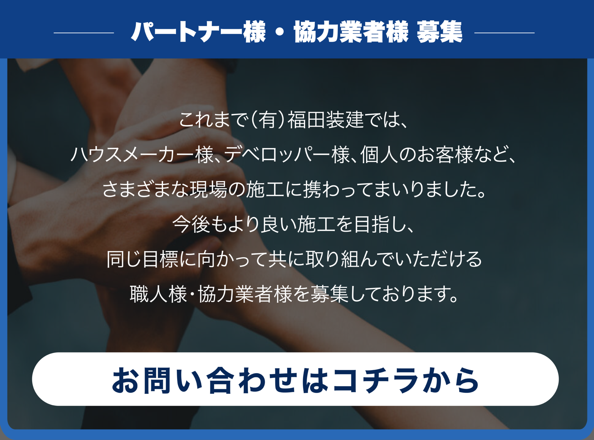私たち福田装建は、お客様一人ひとりの想いに寄り添い、まごころを込めたご提案を大切にしています。